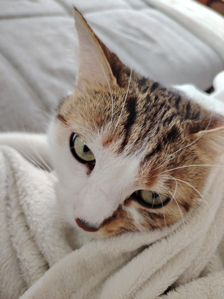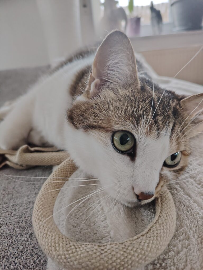 … Als sie zu uns nach Hause kam schnappte sie oft unwillkürlich nach uns, Mia kam aus dem Tierheim. Sie war eine Fundkatze. Eine Frau gab sie im Tierheim ab. Wer weiß was sie vorher erlebt hat. Keiner kennt ihre Vorgeschichte, außer das sie sicherlich eine Wohnungskatze war. Im Tierheim bemühte man sich sehr um Mia, damals Ariane genannt. Inzwischen ist sie wie umgewandelt. Selten schnappt sie noch. Sie hat vertrauen zu uns aufgebaut und fühlt sich in ihrem Revier Pudelwohl. Mia ist eine Einzelgängerin und das respektieren wir. Wir brauchten Geduld, aber es lohnte sich. Sobald sie die Ohren anlegt, oder mit der Rute ausschlägt, lassen wir sie in Ruhe. Denn es bedeutet:“Ich will meine Ruhe“. Und das bekommt sie bei uns. Sie zeigt wann sie Streicheleinheiten will, spielen will, oder ihre Ruhe wünscht. Ja achtet man auf die Katzen Sprache, funktioniert das zusammen Leben. Wir wollten sie nicht mehr missen. Mia ist ein Schatz. Das unwillkürliche Schnappen ist weg. Geduld lohnte sich!!!